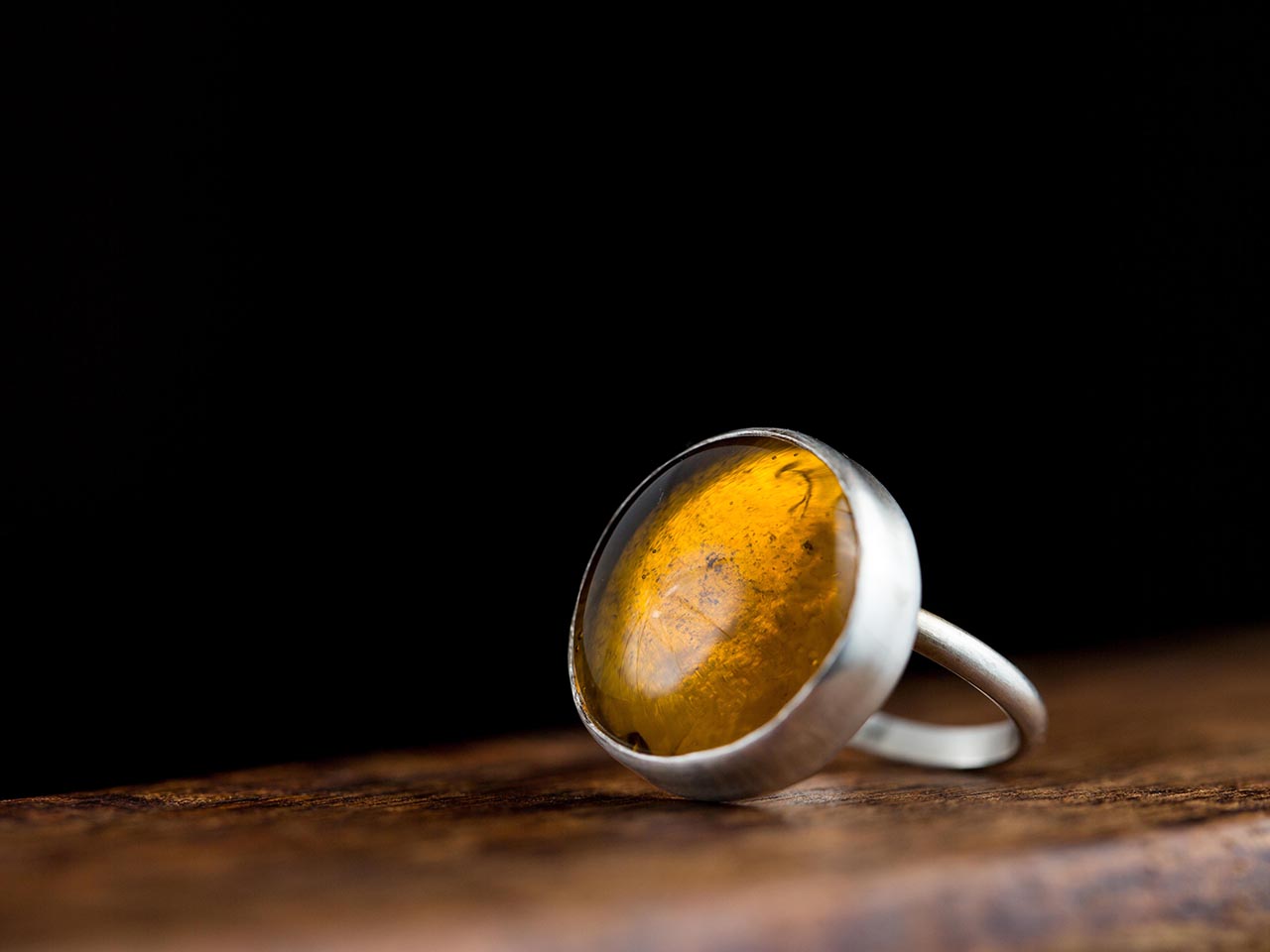 Hand Made Sterling Silver Big Amber Adjustable Pastille Ring