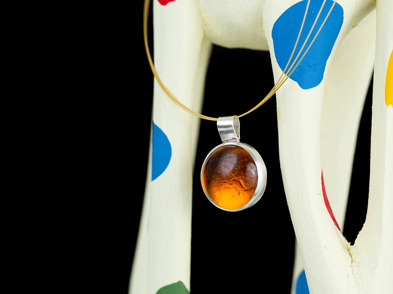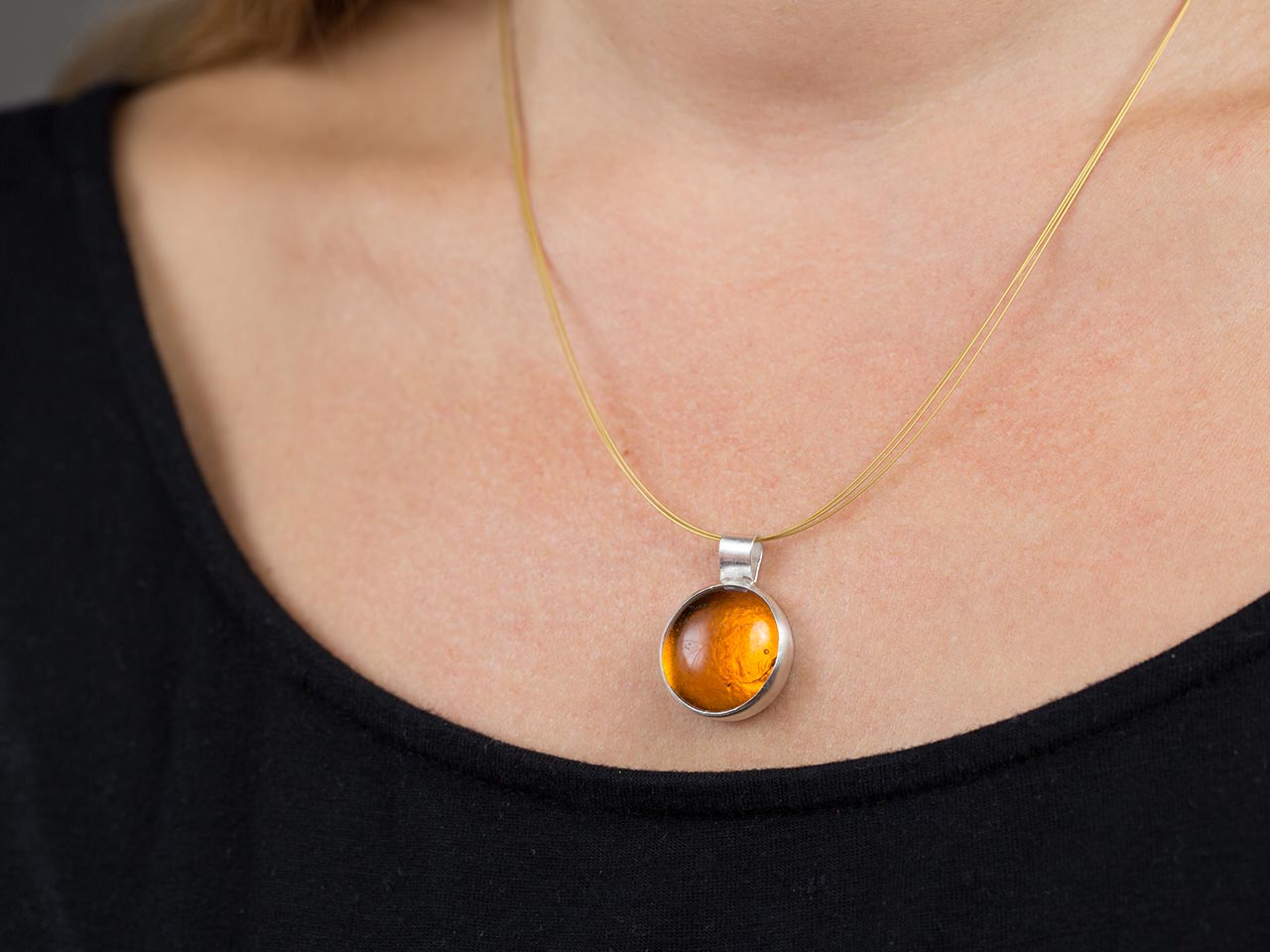 Hand Made Sterling Silver Big Amber Pastille Pendant