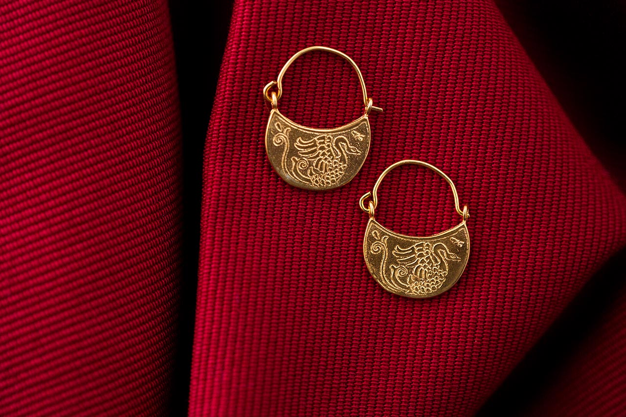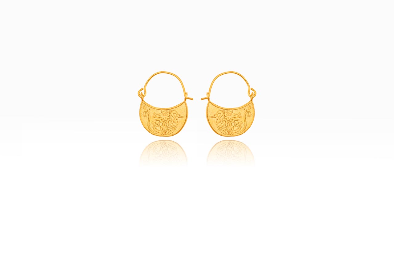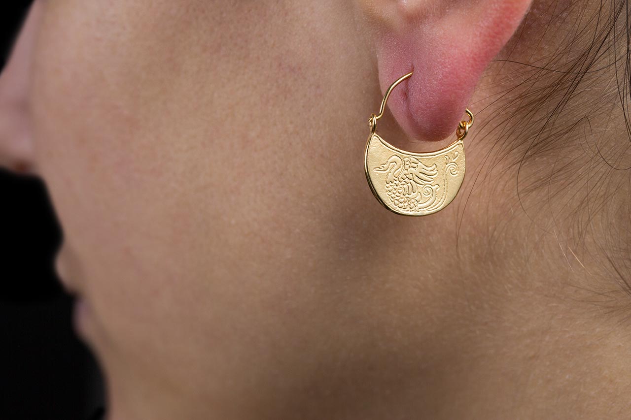 Hand Made Sterling Silver Gold Plated Small Swans Byzantine Hoops